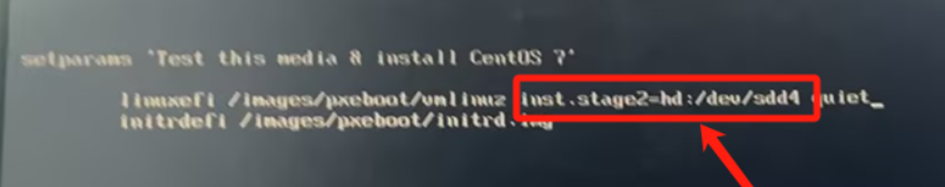 重启服务器,回到install安装的界面按e ,修改为LABEL=/dev/sda4(忘记拍了,用的别人的图),然后根据提示按按Ctrl + x启动